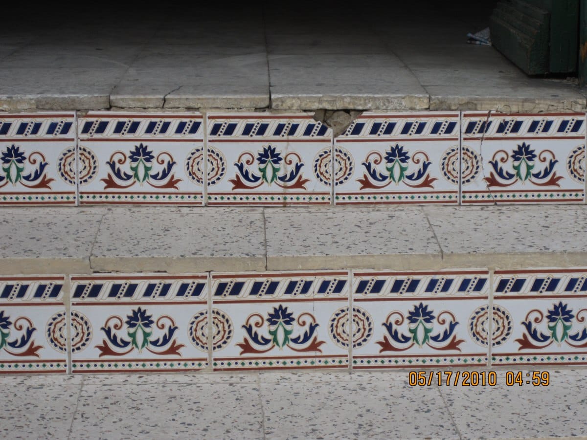 This seems to be a popular basic design with varying trim. The two above were taken in different villages. Here’s another Tunisian stair riser tile design.