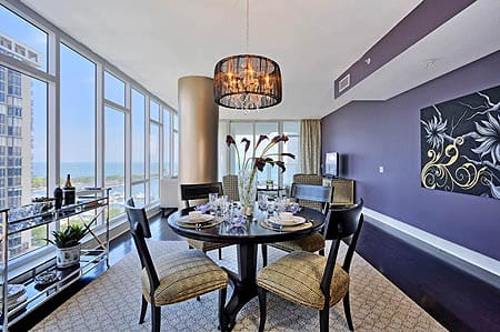 Michelle Jennings Wiebe offers “Modern Balance” in her design, often with bold color as described in this Decorati feature. Here are just a few of her examples from her design firm, Studio M in Tampa Florida.