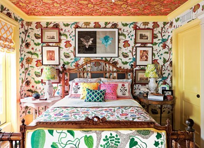 Here’s how to escape via a labor of love. Picture a Tudor row house in Brooklyn filled with a “laboratory” of painted floors, custom floral upholstered sofas and lots of whimsical wallcoverings often used in multiple patterns in one room.