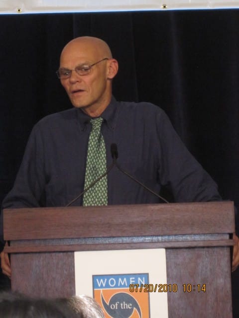 A press conference was held, appropriately enough, at P & J’s Oyster Company where they are no longer shucking oysters. Petitions, pins, plates of sea life cookies, and the Ragin’ Cajun himself, James Carville, were present. Ever thoughtful and prepared, The Women of the Storm also provided fans for attendees to deal with the hot summer day.